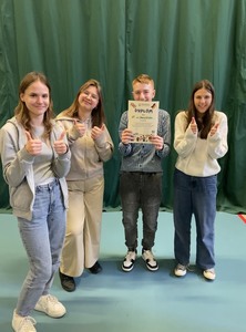 Nie zabrakło również reprezentacji naszej szkoły , którą stanowili: Julia Kącka, Małgorzata Gemba, Julia Pigla oraz Paweł Górny. Zadaniem wszystkich drużyn było zmierzenie się w 7 konkurencjach, które sprawdzały znajomość języka angielskiego i niemieckiego. Cały konkurs przebiegał w przyjaznej formie, a konkurencje rozbudzały uczniowską kreatywność i twórczość. Warto także wspomnieć o dodatkowych atrakcjach, które przygotowali organizatorzy . Czekały bowiem na nas występy wokalne licealistów, pokazy akrobatyczne oraz przepyszna PIZZA! Mimo, iż nie znaleźliśmy się na podium , pozostaną z nami bardzo pozytywne wspomnienia i nowe umiejętności.