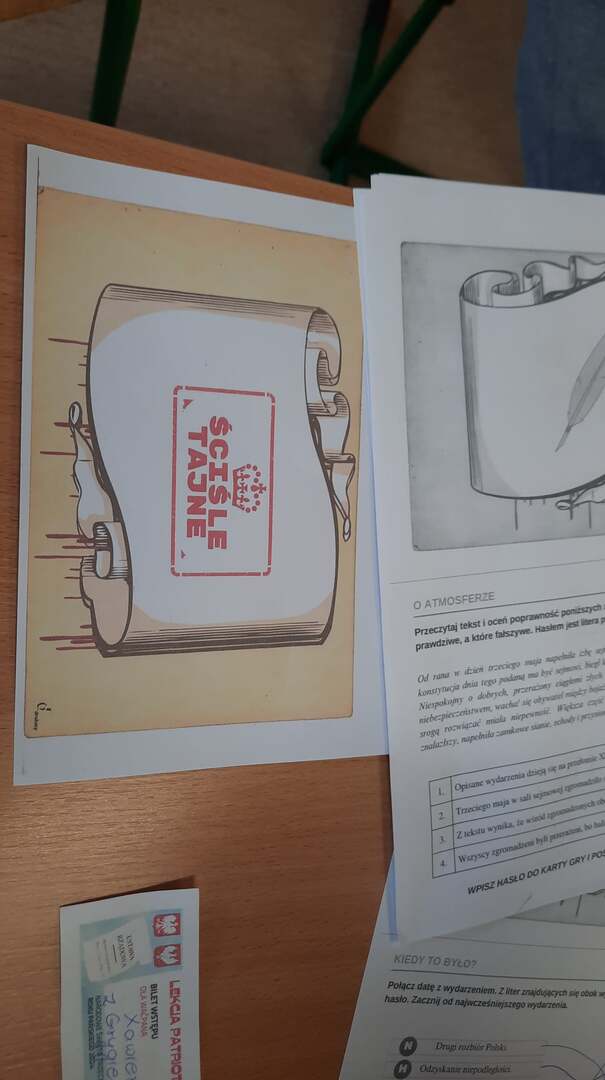 Otóż okazało się, że muszą odnaleźć miejsce przechowywania jednego z najstarszych rękopisów Konstytucji 3 Maja! Aby dowiedzieć się, gdzie znajduje się ten bezcenny rękopis, uczniowie musieli rozwiązywać zadania według zaszyfrowanych wskazówek ... Po wykonaniu wielu zadań, okazało się, że rękopis Konstytucji znajduje się w ...
