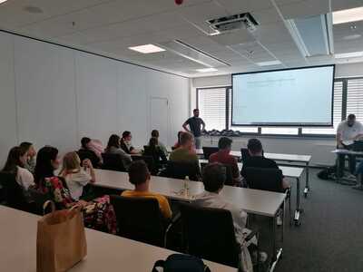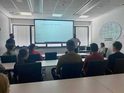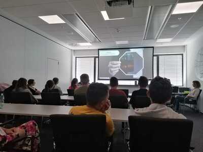 Grupami zaopiekowali się instruktorzy praktycznej nauki zawodów Mechatronik i PTS Tomasz Stachowiak i Michał Konwinski, którzy omówili specyfikę pracy w naszej firmie i przedstawili stosowane metody e-learningowe.