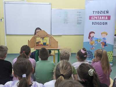 Z okazji XXIII Ogólnopolskiego Tygodnia Czytania Dzieciom Biblioteka z Lwówka przygotowała niespodziankę. Z tej okazji panie bibliotekarki odwiedziły nasza szkole i zaprosiły klasy I-III do wysłuchania książek Kamishibai. Było to niezwykle doświadczenie w przekazywaniu informacji.