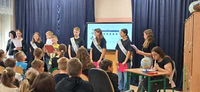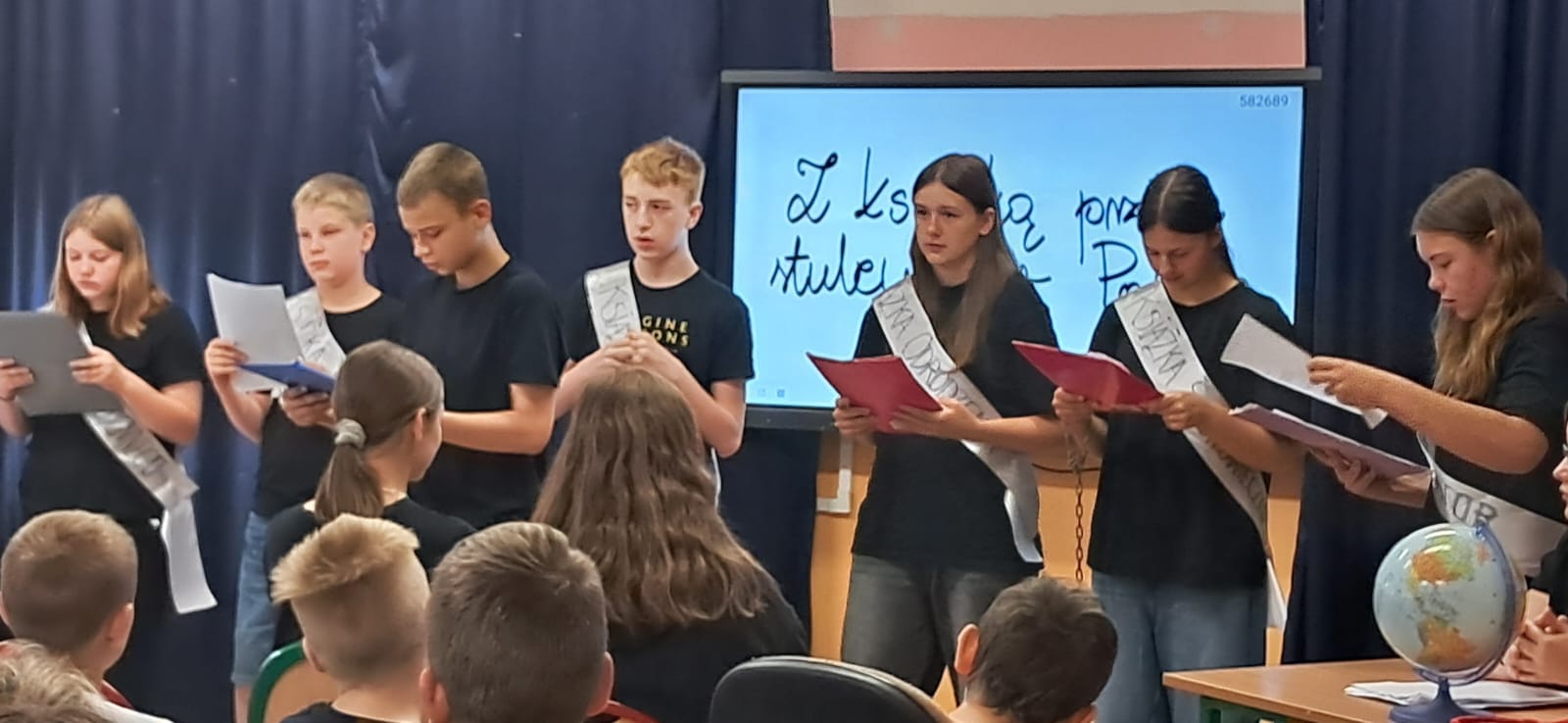 W dniu 17.06.2024 uczniowie naszej szkoły przedstawili tematykę związaną z ,, Książką przez stulecie w Polsce " Inscenizacja dotyczyła powstania książki na tle epok literackich, pokazano rozkwit piśmiennictwa i czytelnictwa w Polsce - jednocześnie zachęcając do czytania w dzisiejszych czasach mimo rozwijającej się technologii komputerowej. Nadchodzące wakacje są do tego najlepszą okazją.