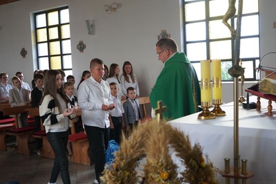 Na początek uczniowie, rodzice i wszyscy pracownicy szkoły uczestniczyli w mszy świętej, na której również poświecone zostały tornistry pierwszaków.