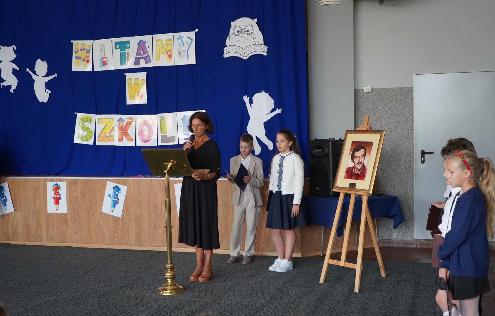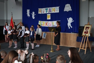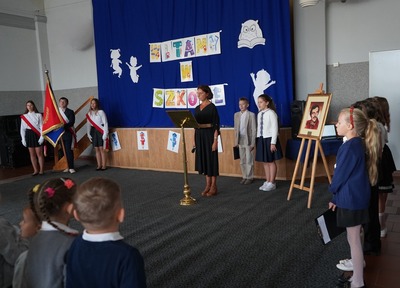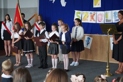 Później wszyscy udali się na salę wiejską, gdzie oficjalnie pani dyrektor Renata Marciniak ogłosiła rozpoczęcie kolejnego roku szkolnego.