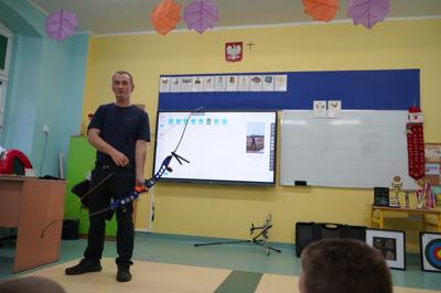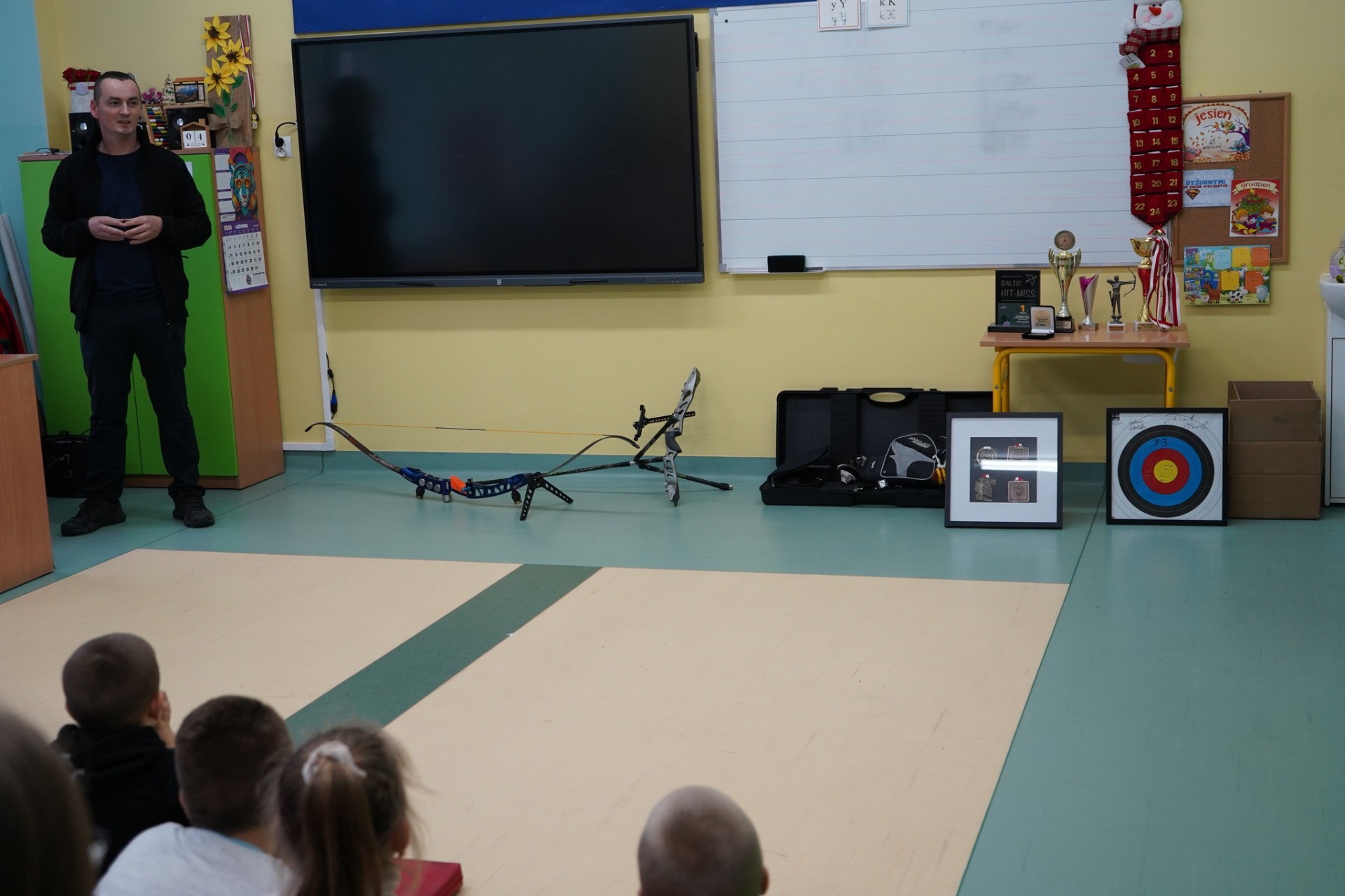 Mistrz Polski opowiedział uczniom o swoich licznych sukcesach sportowych, a także o wyrzeczeniach i trudnościach, które towarzyszą w drodze każdego sportowca.