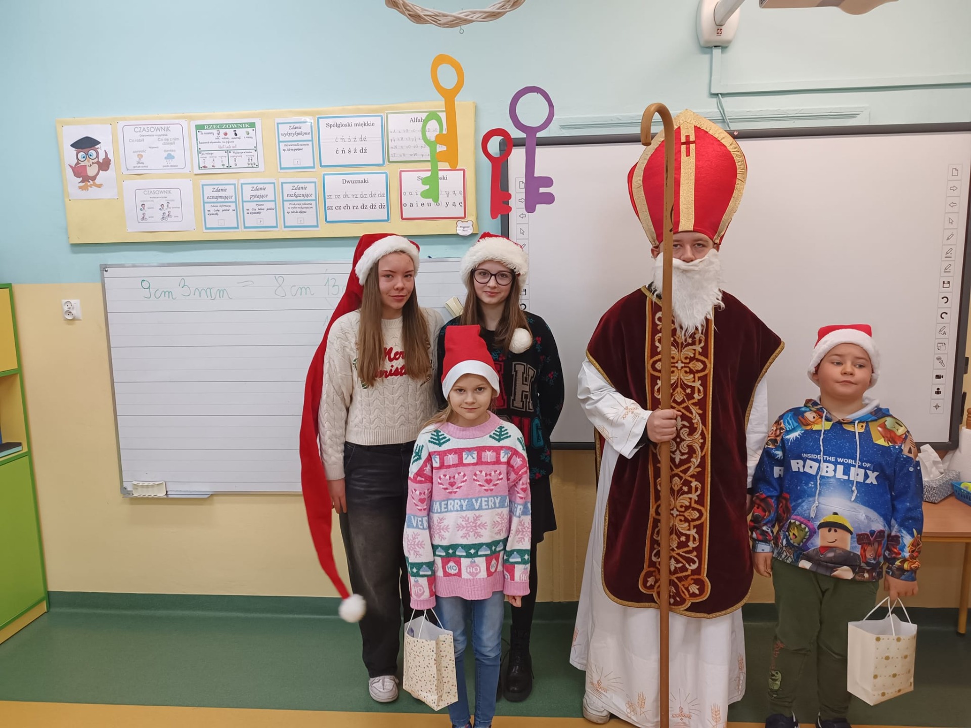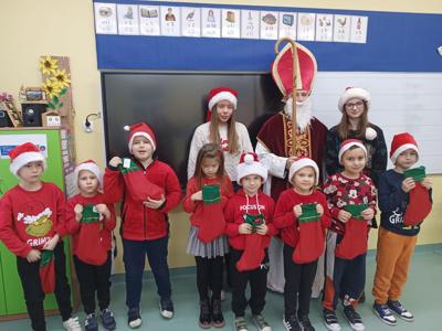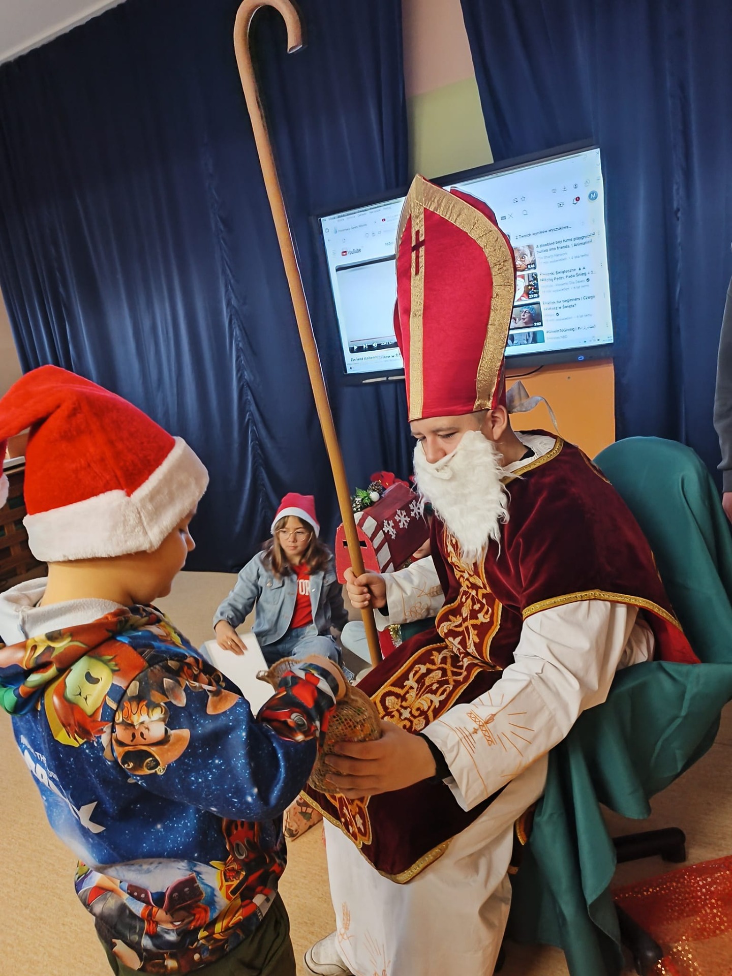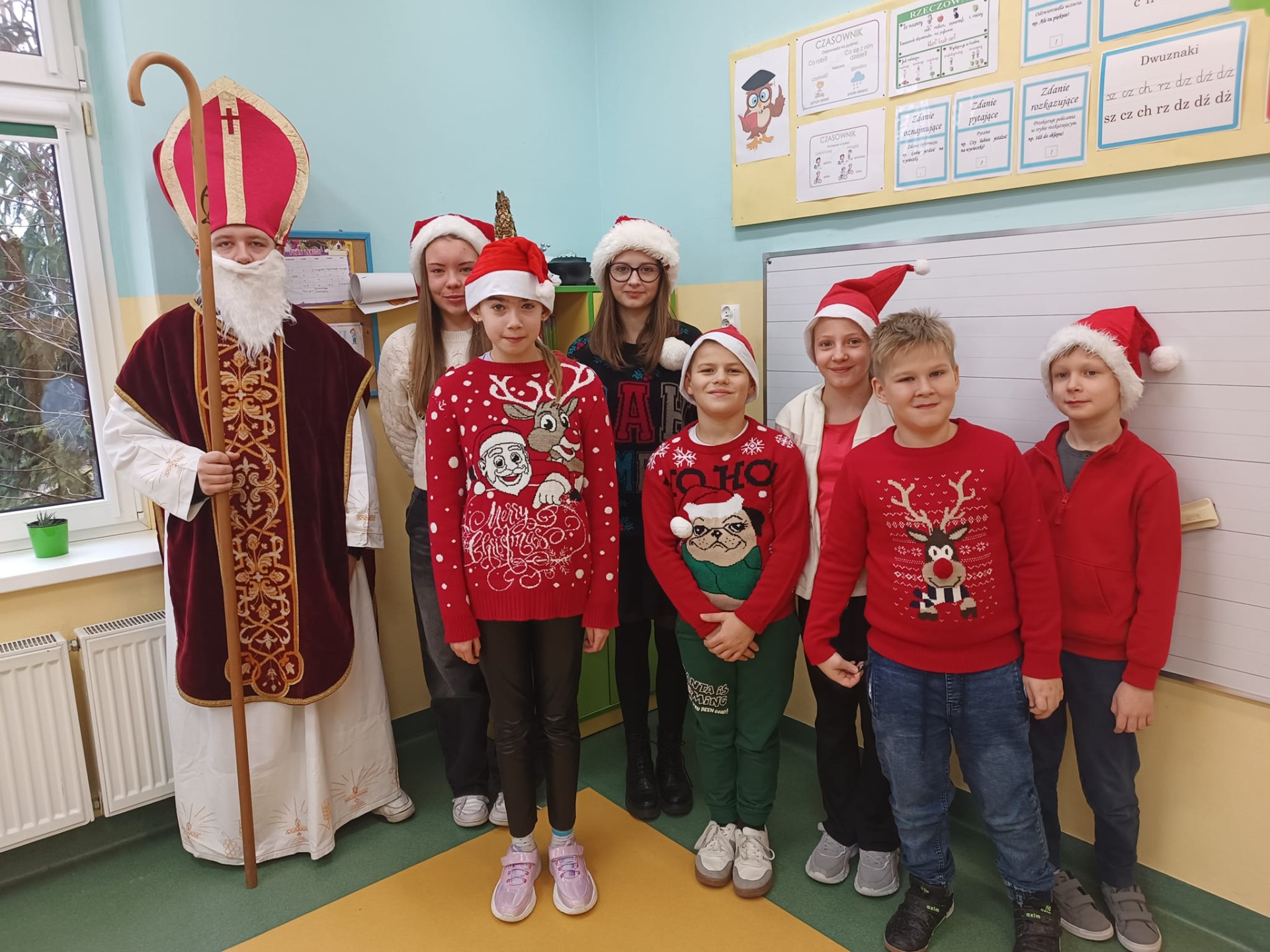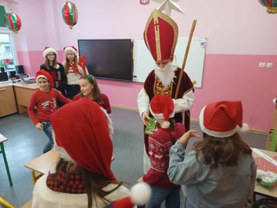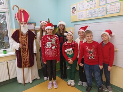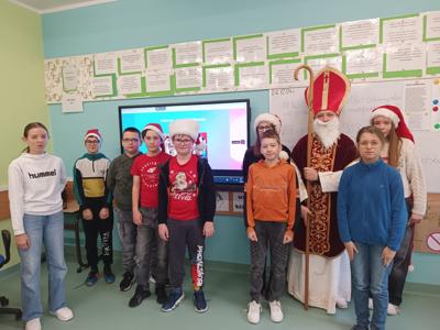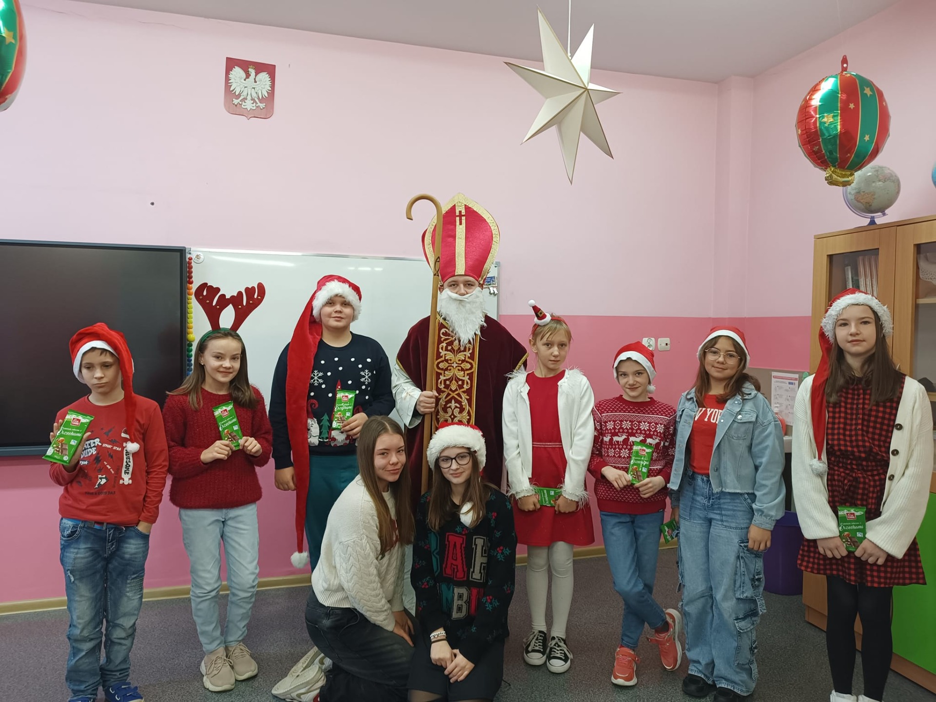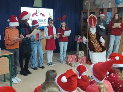 Jak co roku 6 grudnia odwiedził nas Święty Mikołaj. Samorząd Uczniowski wraz z opiekunem panią Martą Jakubowską przedstawili historię Świętego Mikołaja.