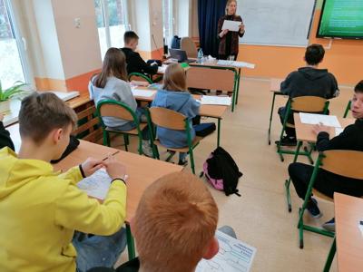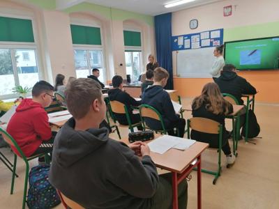 W ramach lekcji z doradztwa zawodowego uczniowie klasy 7 i 8 gościli w szkole kierownictwo Powiatowego Urzędu Pracy z Nowego Tomyśla.