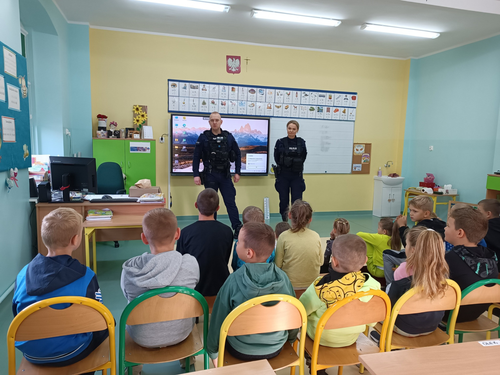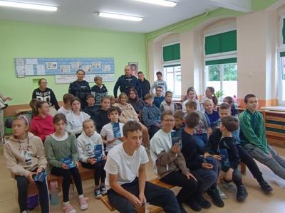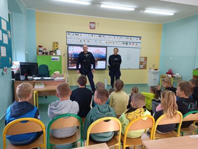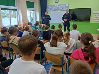 Prelekcja na temat bezpieczeństwa z udziałem funkcjonariuszy policji z Lwówka