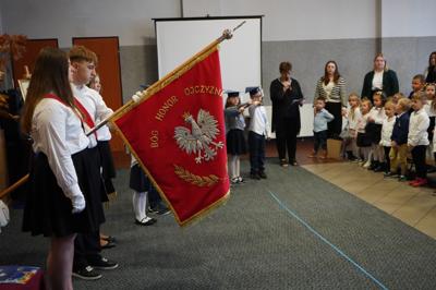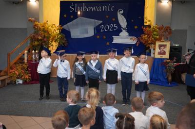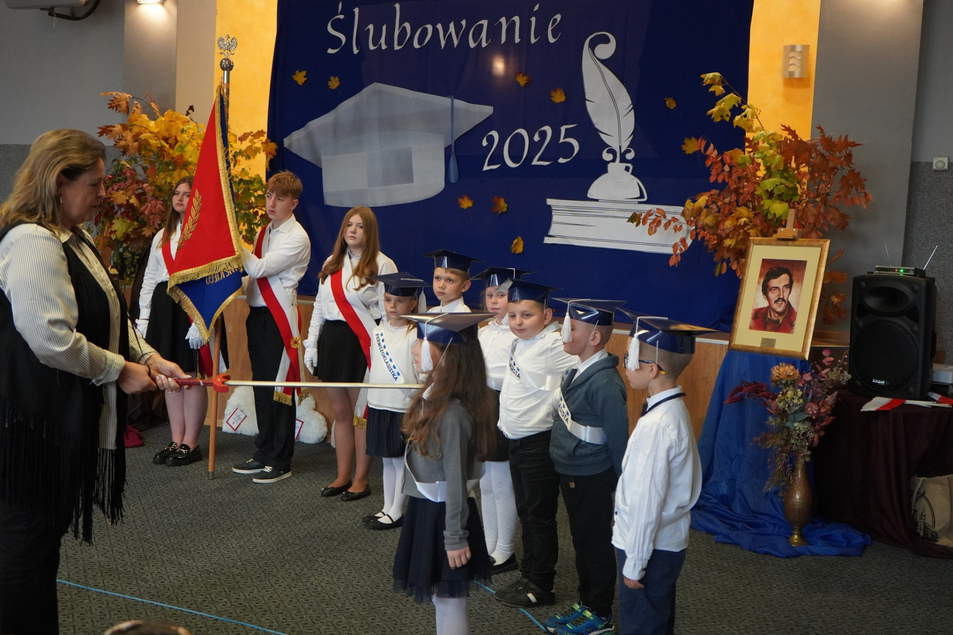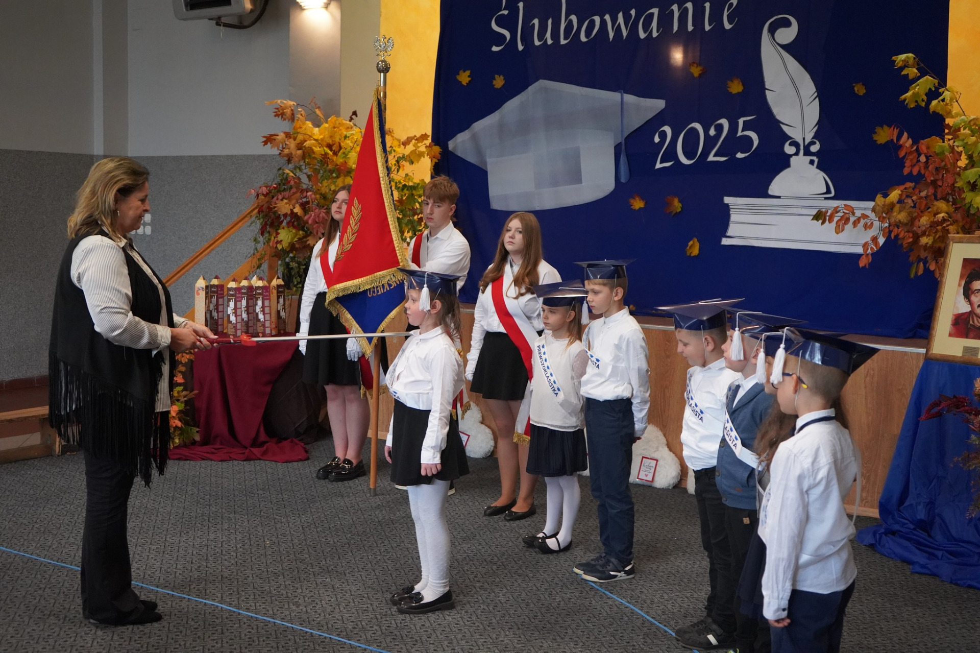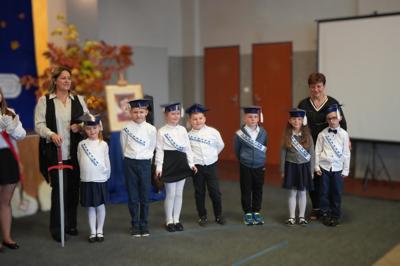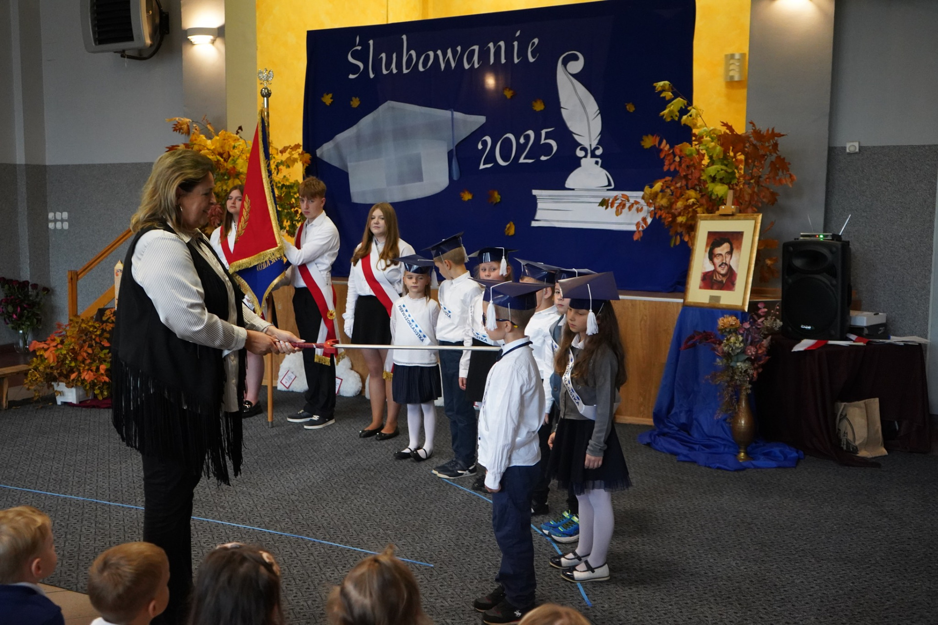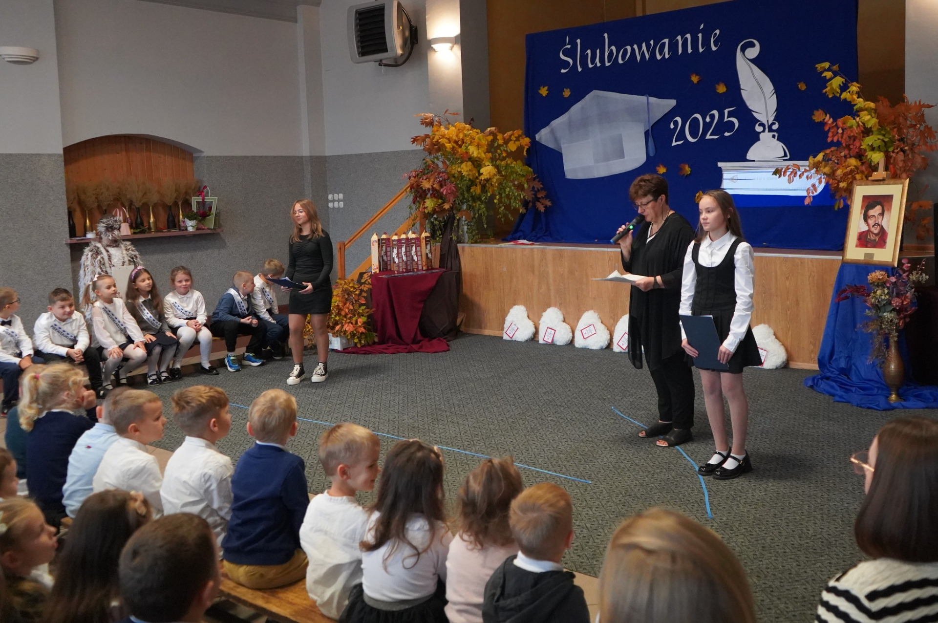Najważniejszym momentem uroczystości było złożenie ślubowania oraz akt pasowania na ucznia. Pani Dyrektor, używając dużego, symbolicznego miecza dokonała pasowania, a każde dziecko otrzymało pamiątkowy dyplom oraz drobny upominek. W oczach wielu pierwszoklasistów widać było dumę i wzruszenie – od tego dnia stali się pełnoprawnymi członkami naszej szkolnej społeczności.