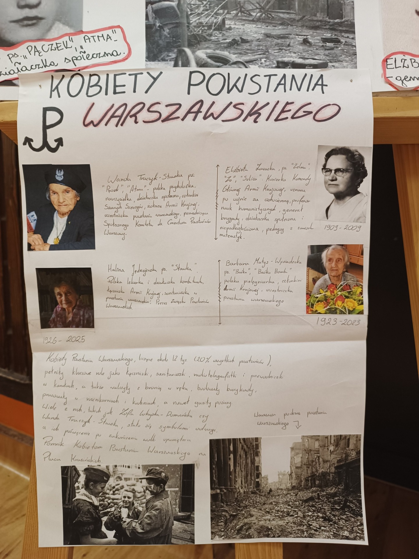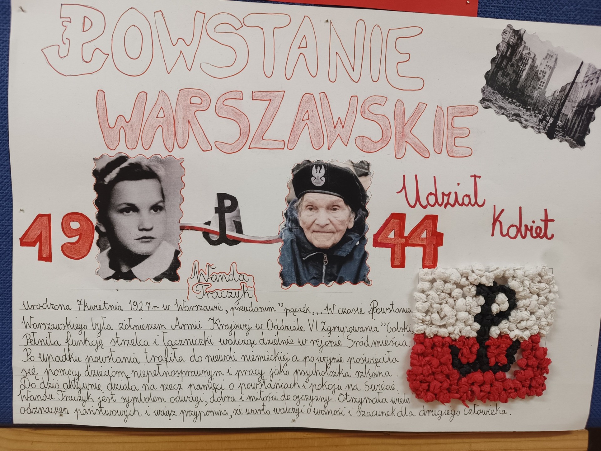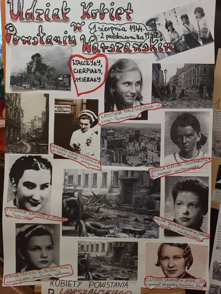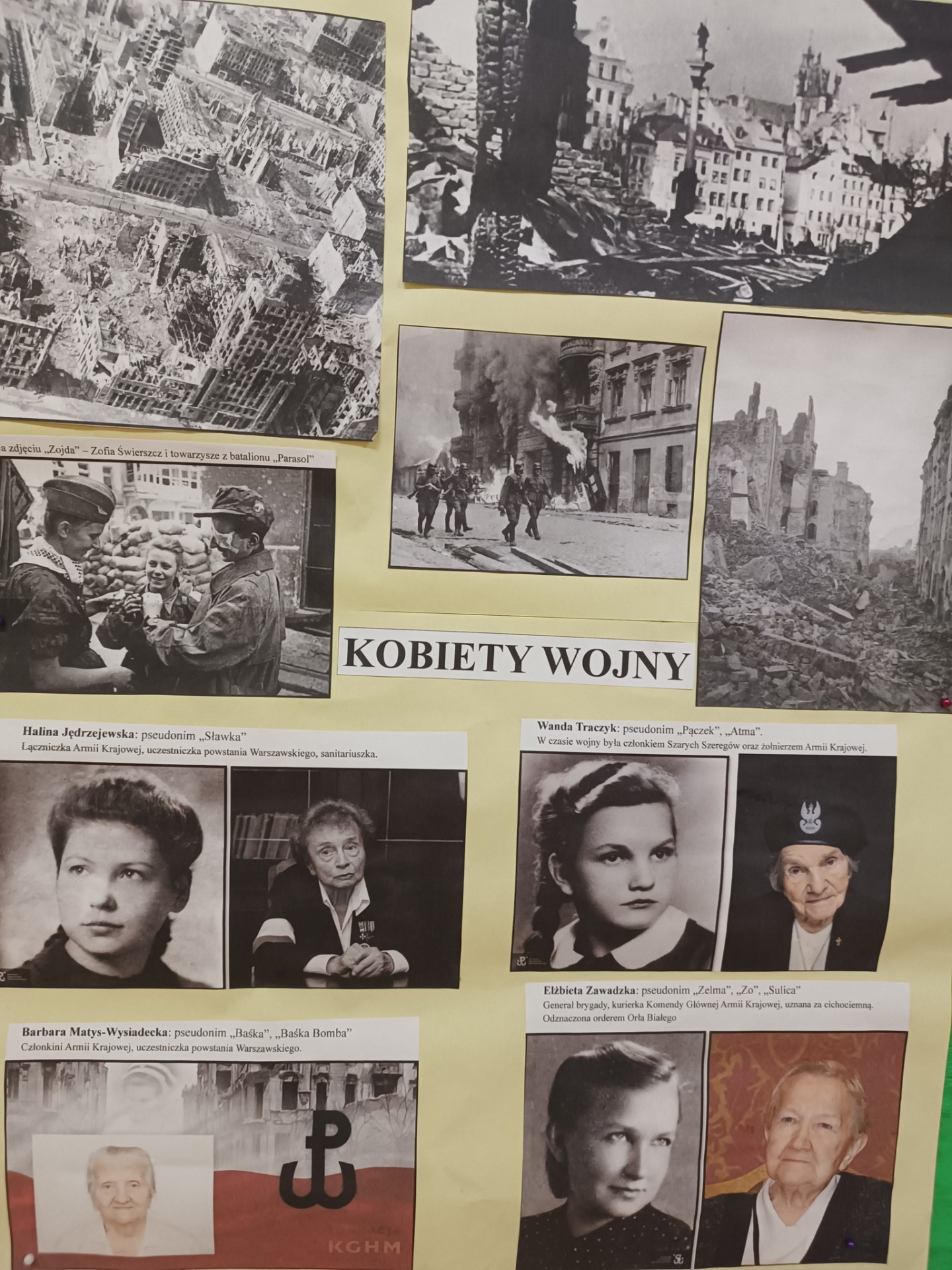 W tegorocznej edycji akcji BohaterOn klasa VI i VIII poświeciła uwagę roli Kobiet, które również były zaangażowane w czasie II wojnie światowej, a szczególnie podczas wybuchu Powstania Warszawskiego. Podczas lekcji mogliśmy zobaczyć archiwalne zdjęcia oraz filmy, które pokazały rzeczywiste warunki życia. Następnie młodzież zaprezentowała plakaty, które przygotowała wcześniej w domu. Zgodnie wszyscy stwierdziliśmy, że Kobieta pełniła różne role, np. Mamy, Babci, Teściowej, Siostry i życie dodatkowo wymusiło na nich bycia m.in. sanitariuszką, łączniczką. Niewątpliwie ich postawa i zaangażowanie stanowią dla nas wszystkich postawę godną naśladowania. Ich odwaga i heroiczne postępowanie zasługują na naszą pamięć.