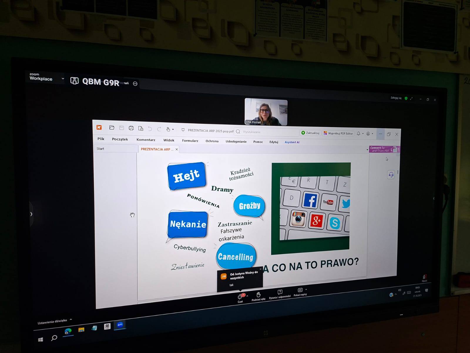 Lekcje online poprowadzili adwokacji z Izby Adwokackiej w Poznaniu, którzy przybliżyli: czym jest hejt, a czym konstruktywna krytyka, jakie konsekwencje prawne mogą grozić za zachowania w sieci, jak reagować, gdy jesteśmy świadkami lub ofiarami hejtu,