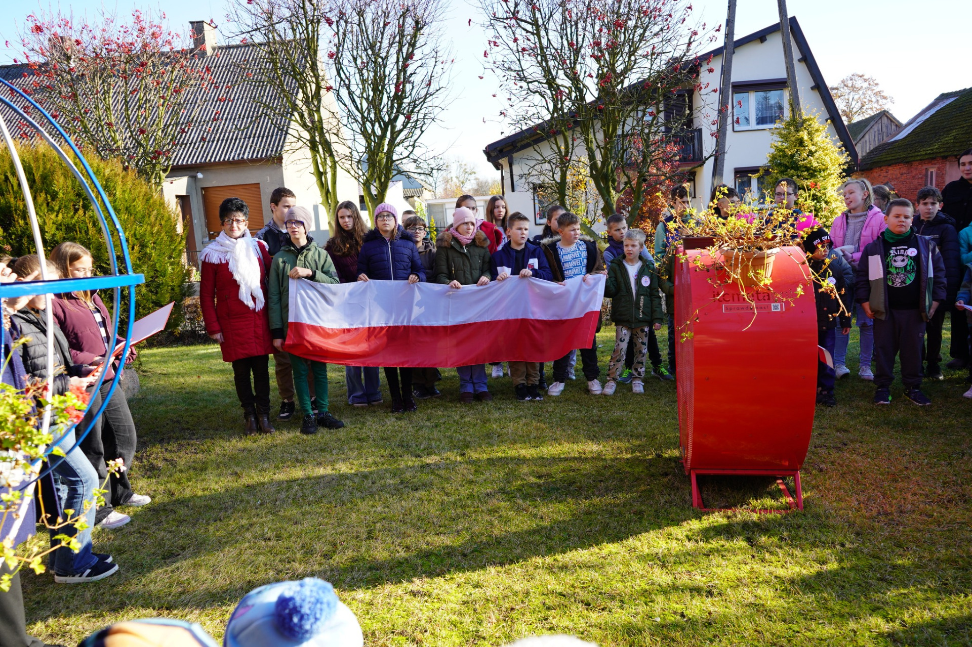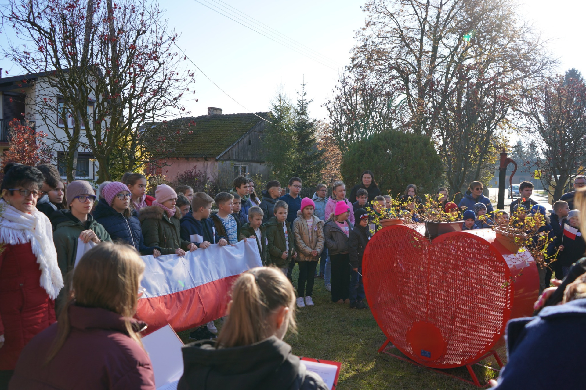 Na zakończenie uroczystości cała społeczność szkolna odśpiewała piosenki patriotyczne, wprowadzając wszystkich w nastrój dumy i radości z bycia częścią wolnej Polski.