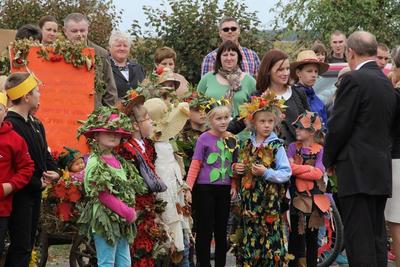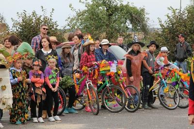 W kategorii za najbardziej pomysłowy strój zwyciężyły dzieci na hulajnogach i dzieci przebrane za jesień .