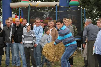 rozpoczęła się z rywalizacja ,główna atrakcja tej imprezy- RZUT SNOPKIEM o puchar Burmistrza Miasta i Gminy Lwówek .
